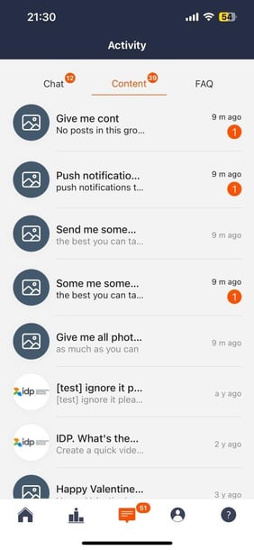 Please note that if you are already an ambassador on TAP, you will be able to differentiate between chats and content requests coming from your university, and from IDP, by virtue of the fact that anything from the IDP Community will have the IDP logo next to it like in the below: